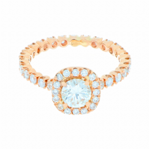 Anello in oro rosa con diamante centrale e diamanti laterali