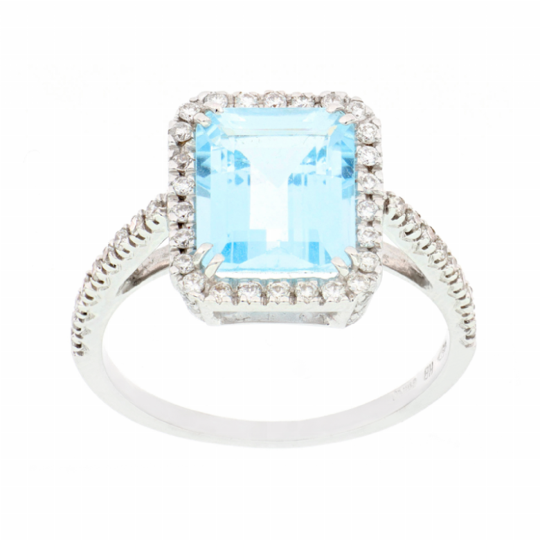 Anello in oro bianco con acquamarina e diamanti taglio brillante