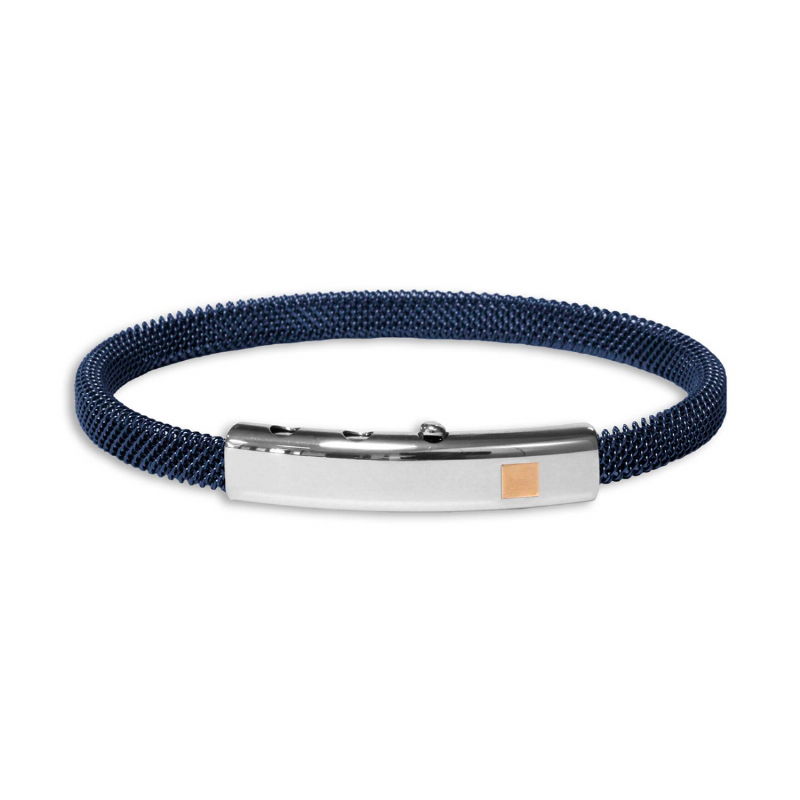 Bracciale da uomo in acciaio con elemento in oro rosa