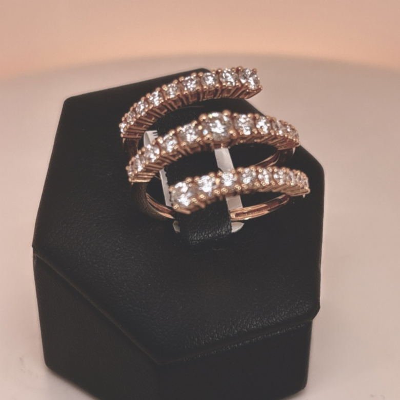 Un gioiello scenografico e sofisticato, pensato per chi desidera distinguersi con eleganza. Questo anello in oro rosa si sviluppa in un design avvolgente a più fili, creando un movimento fluido e tridimensionale che valorizza la mano con luce e carattere.