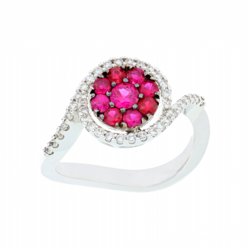 Anello in oro bianco con rubino e diamanti