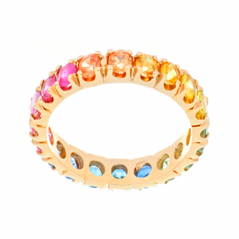 Anello rainbow in oro rosa e 20 zaffiri