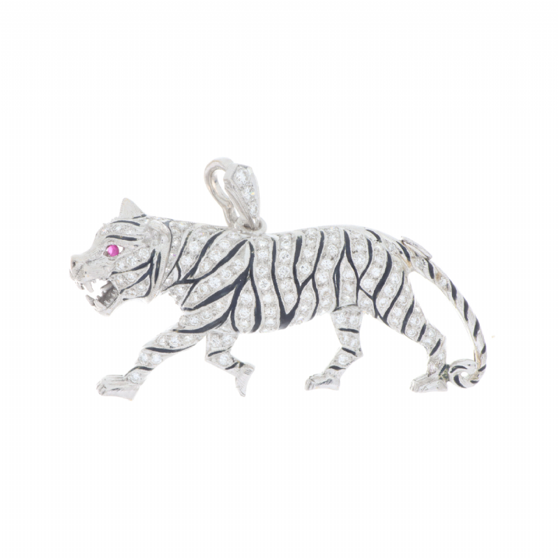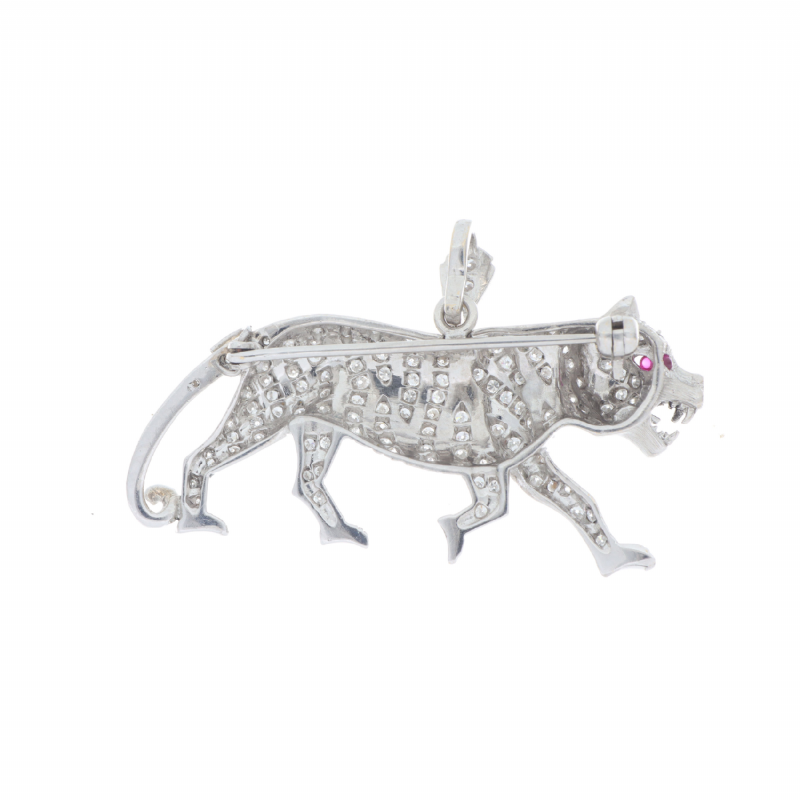 Ciondolo spilla in oro bianco con diamanti e rubini