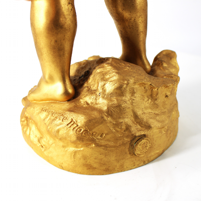 Pregevole Orologio da arredo francese in ottone, firmato Auguste Moreaux